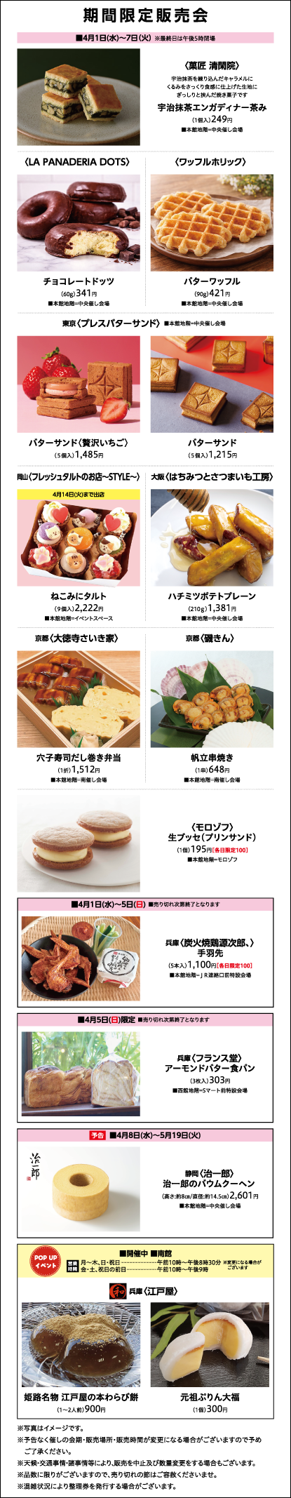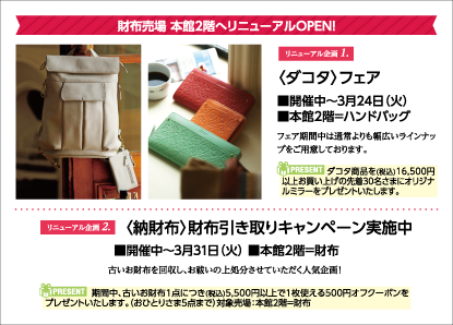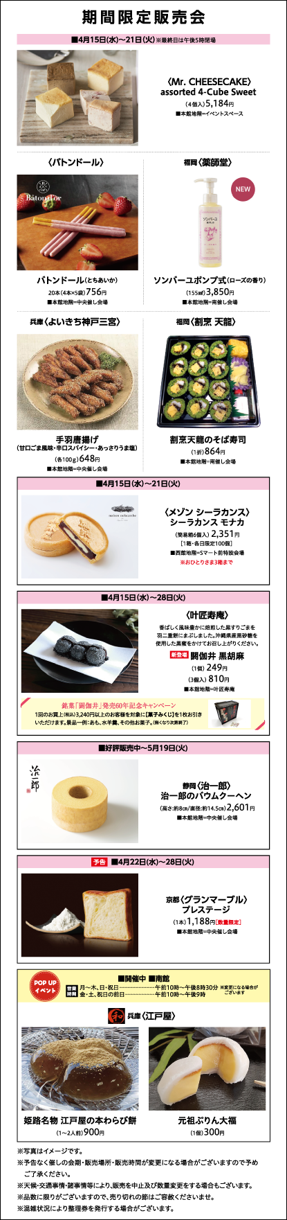 営業時間 朝10時~夜7時30分(地階~西館5階) 朝10時~夜7時(本館5階・6階)