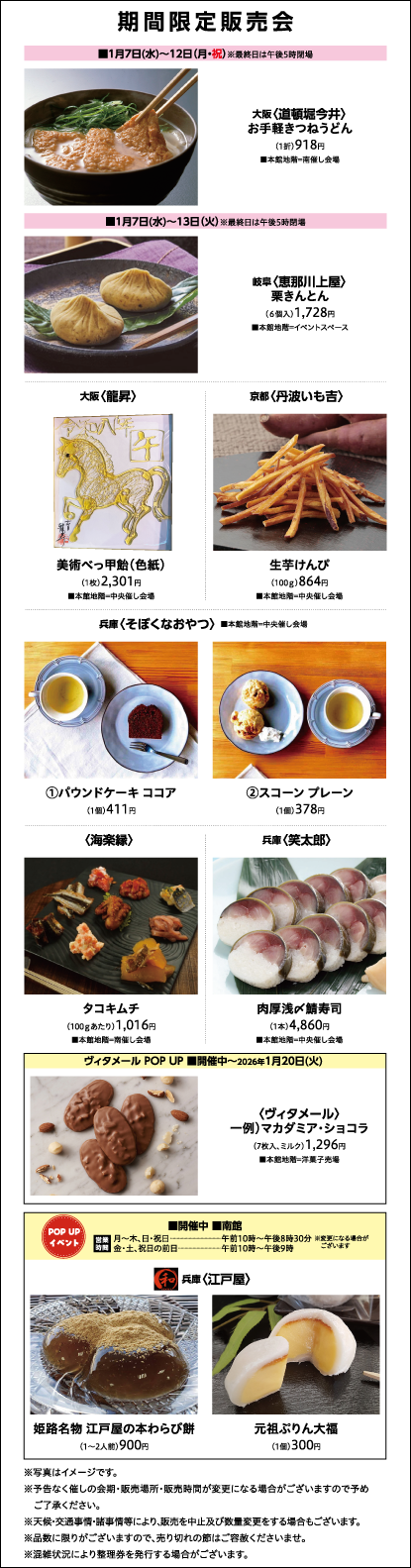 営業時間 朝10時~夜7時30分(地階~西館5階) 朝10時~夜7時(本館5階・6階)